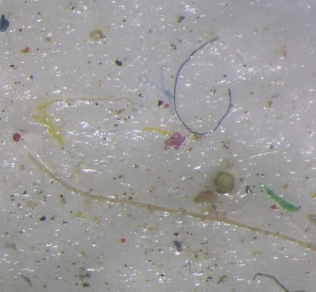 他们在四个不同地点钻取18条冰芯,每条长度达两公尺,当中明显可见,有各种大小形状的塑胶粒子及丝状物。