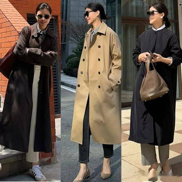 风衣是秋天用来凹造型的单品了,长款的风衣也可以搭配平底鞋来穿,选择修身一些的裤子更显瘦显高。 卡其色风衣经典中的经典款了,几乎每年秋天都在穿它,可以搭配修身的牛仔铅笔裤,显得人更高挑利落一些,搭配卡其色的平底乐福鞋,高级感拉满。