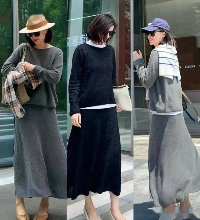 秋天在选择内搭时,一般都会选择没有太多修饰的毛衣或是衬衫,很喜欢软糯的羊绒毛衣,选择经典的黑白灰更加百搭,而且不容易过时。 灰色的毛衣,简约宽松一些更遮肉显瘦,搭配灰色的羊毛裙,单一的配色更显高级,可以搭配暖色调的驼色平底鞋,增加了时尚感。