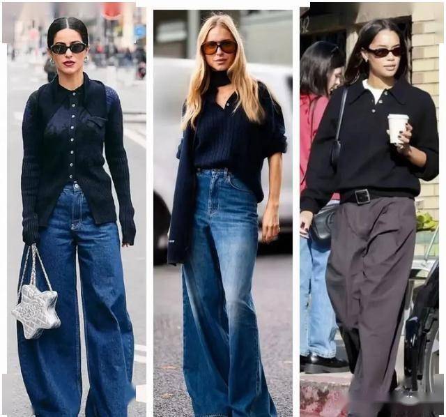 牛仔裤是最最经典的单品,它有一种无畏的青春感,只要上身就显得人很利落年轻,而且超级百搭,几乎可以搭遍衣橱里所有的上衣。 秋天的时候,建议选择一件藏蓝色的宽松毛衣,简单的廓形更加慵懒自由,搭配丹宁牛仔阔腿裤,同色系搭配更为高级,显白又显贵,而且减龄效果也超级好。