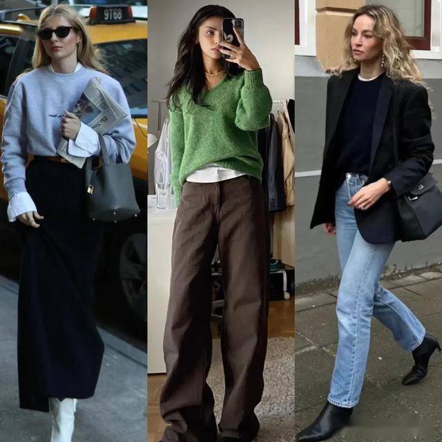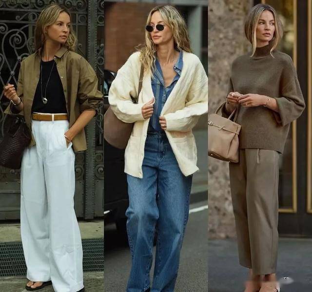比如,秋天的时候,一件白色的奶奶毛衣,里面搭配了帅气的牛仔衬衫与牛仔阔腿裤,都是非常经典的基础款,但穿起来给人的感觉却是洒脱时尚的,又有一种特别青春的味道。 咖色的宽松毛衣,带着秋日的温暖氛围,慵懒又舒服,搭配了同色系的奶奶裤,更加休闲大气了。