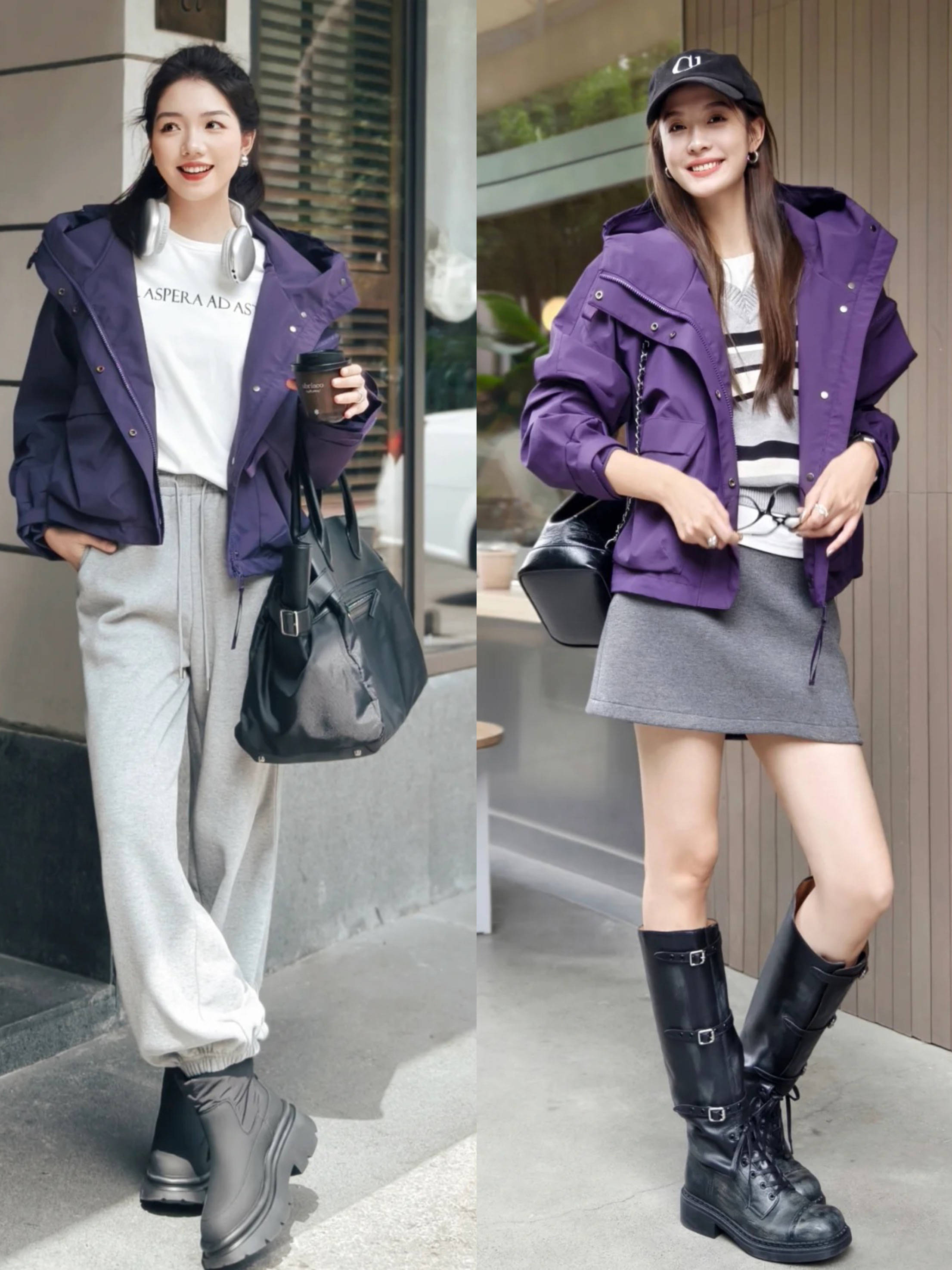 冲锋衣+毛呢裤