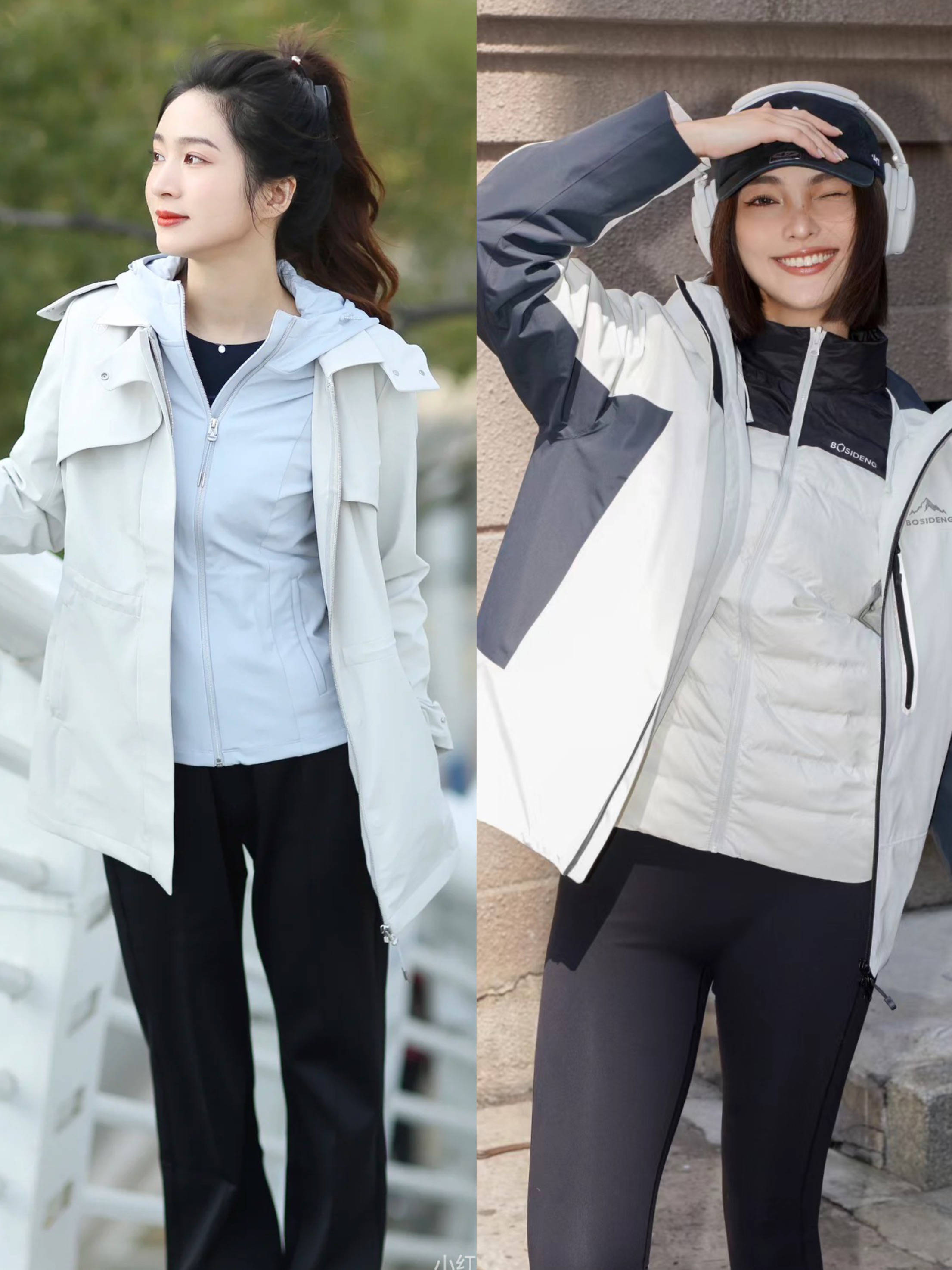 双冲一般会选择两件套的款式,再加一件摇粒绒/轻羽绒的内胆,满足低温时候的需求。更加保暖、实穿,深秋和初冬都能应对自如。