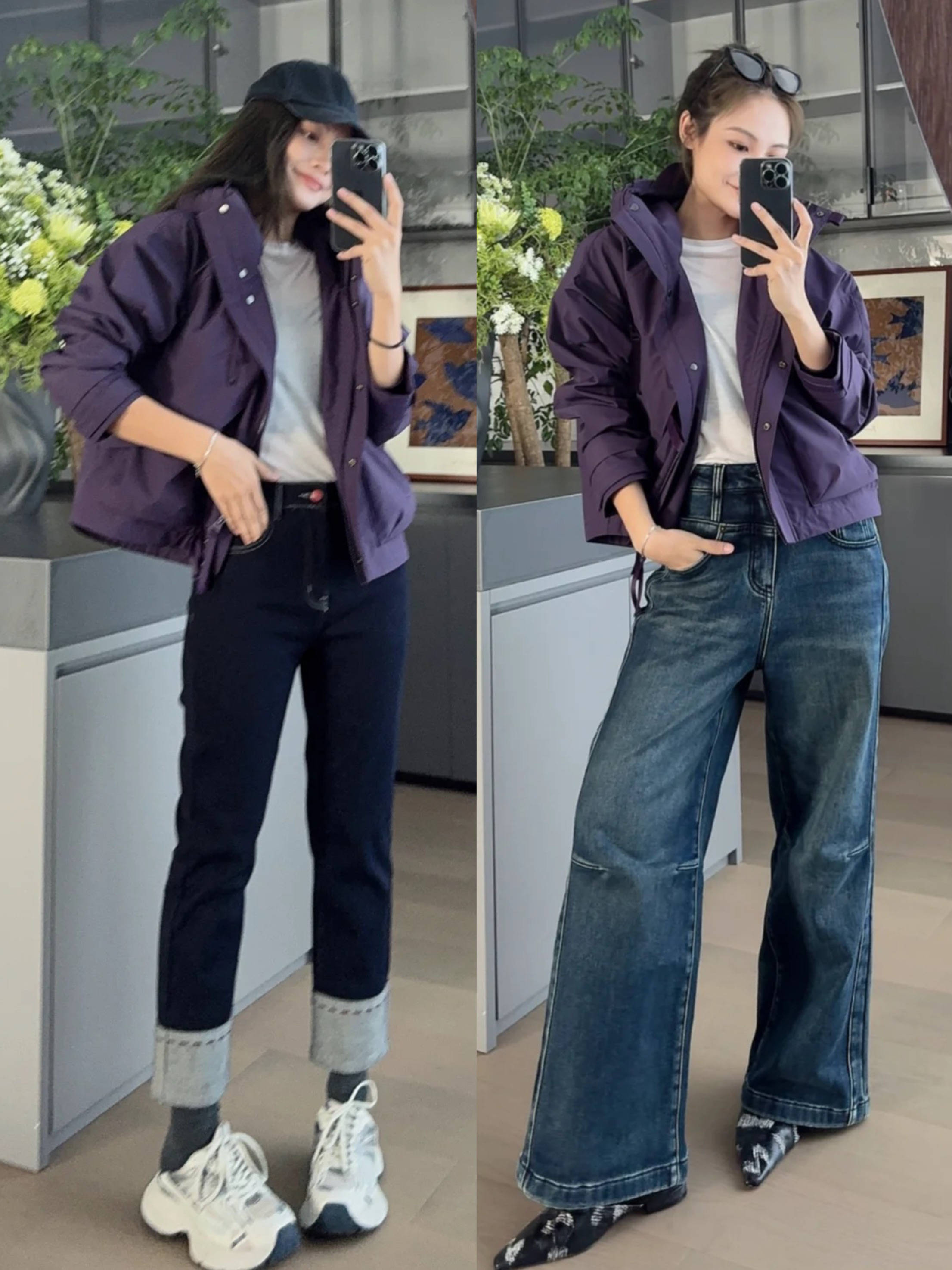 冲锋衣+直筒牛仔裤