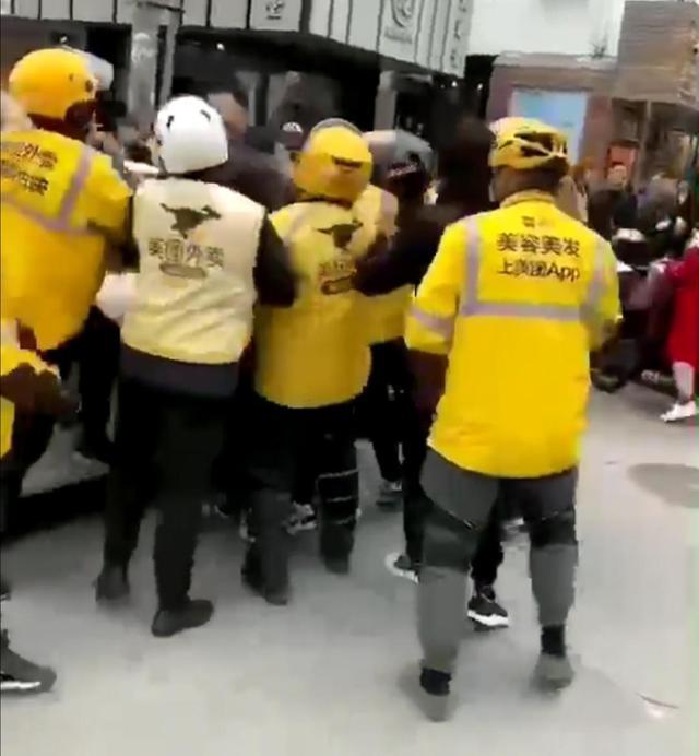 在另一段视频中可以看到,奔驰车主手中拿着一个杯子,美团外卖小哥一起去抢夺车主手里的杯子,场面很混乱,混乱之中双方各有出手,但是并不激烈。