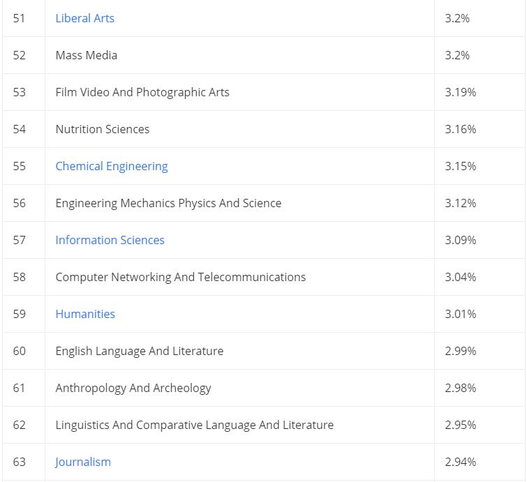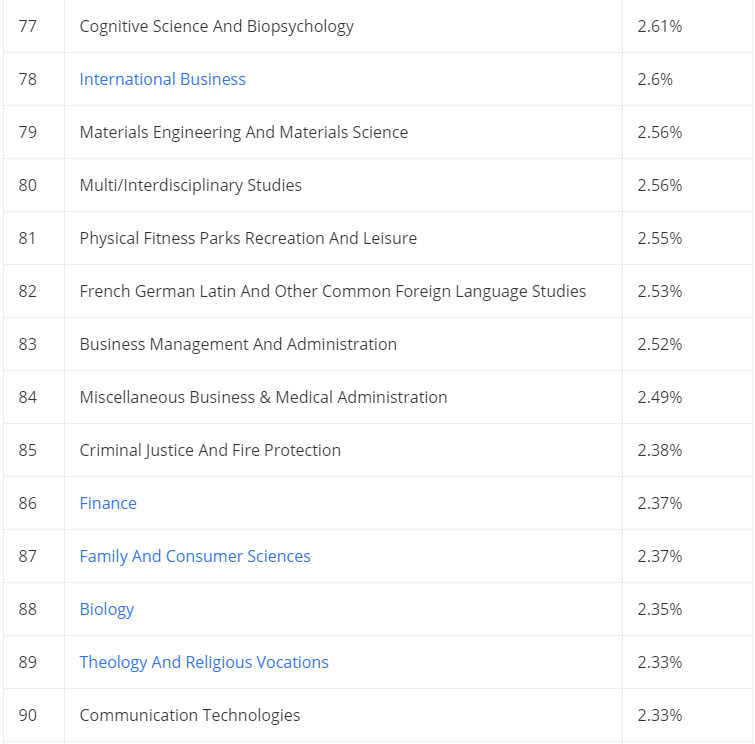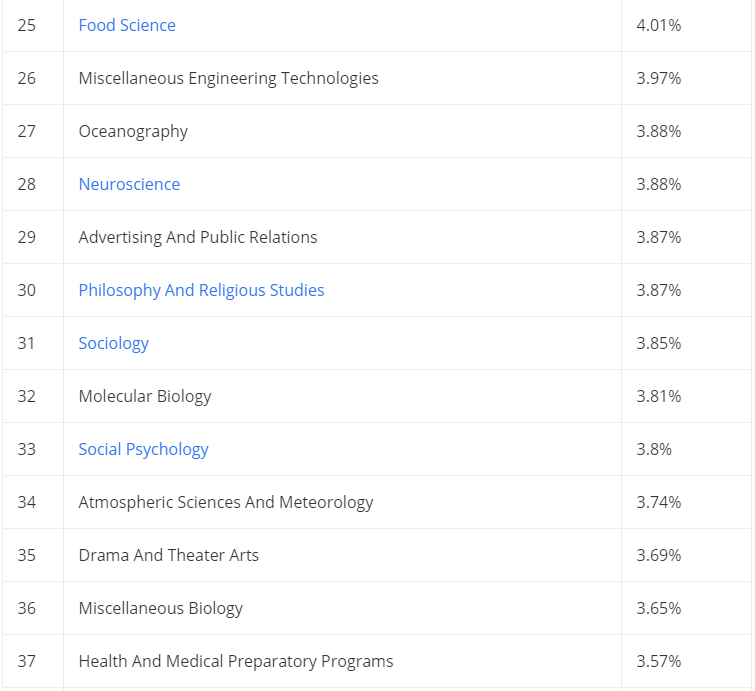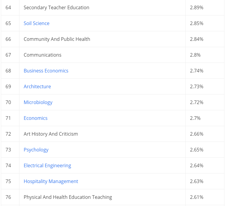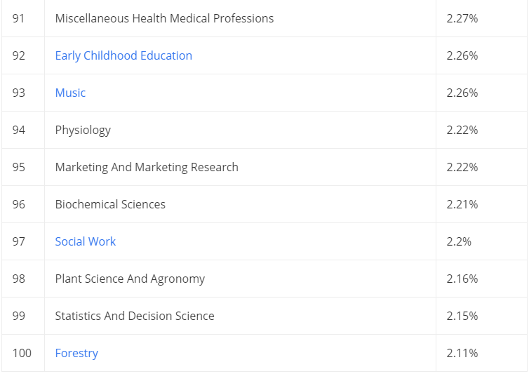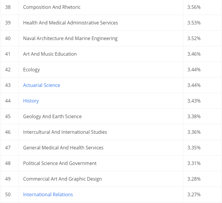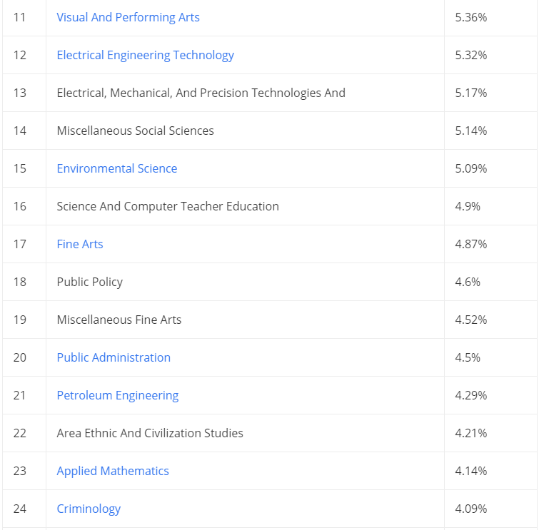 Zippia根据PUMS的人口普查数据以及美国大学各专业毕业生的就业情况,最终算出各个专业的失业率,列出最终排名。