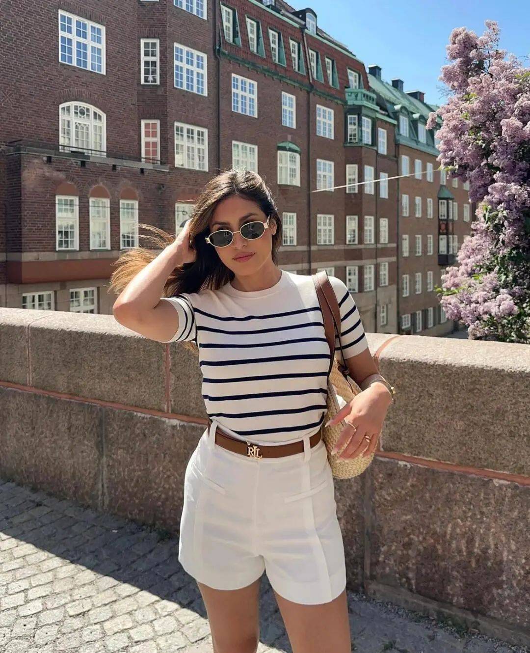 但如果大家想要同时兼具防晒和凉快、方便和干练,选择短裤更有性价比。在众多材质的短裤中,唯有西装短裤始终处于屹立不倒的地位,选款搭配都省时节力,对穿衣小白和赶时间的姐妹来说,非常友好。