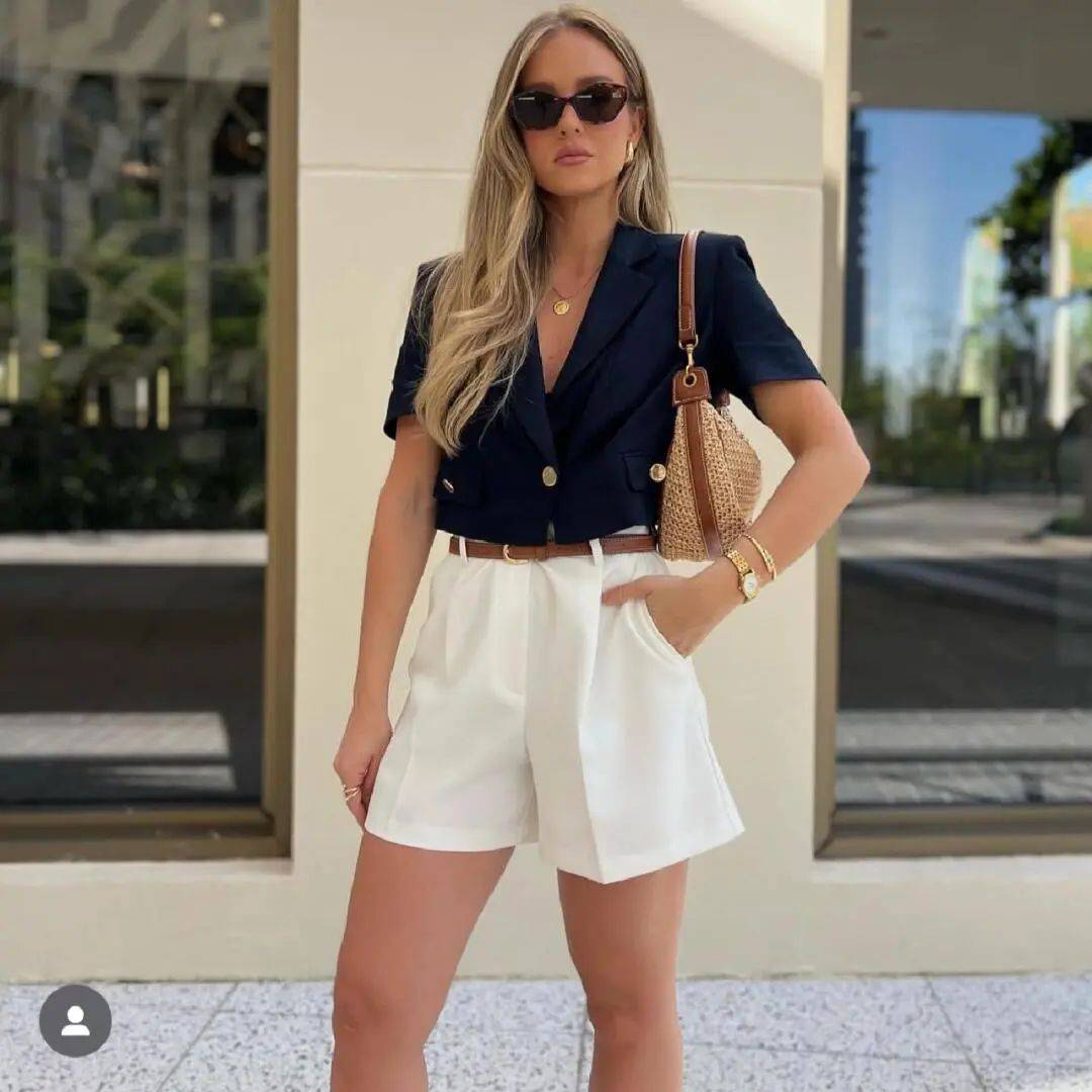 或许有姐妹会觉得自己腿型不好看,不适合选择西装短裤,但其实并没有这一说法,很多时候,西装短裤的版型可以完全隐藏腿型的不完美。