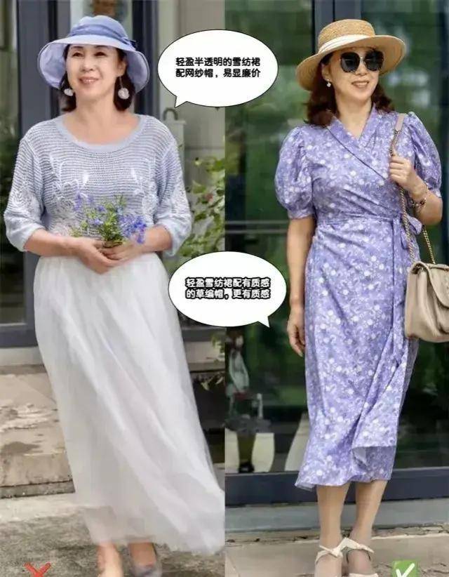 如果你是五六十岁的中年女性,想要让自己变得更加优雅,而且又有活泼的氛围感,可以像下面这位博主一样,用碎花裙搭配上纯色系的草帽,繁简结合的搭配技巧,让你变得更高级。