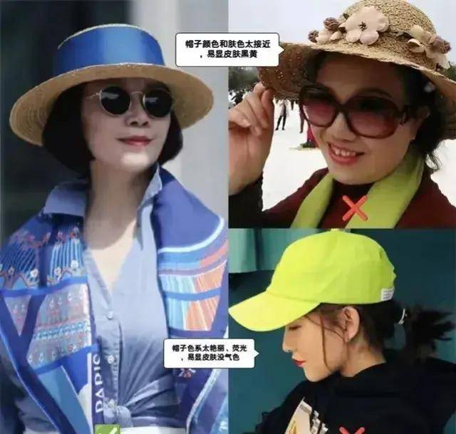 例如下面这一款棒球帽,荧光色确实戴起来很有少女感,但是不适合五六十岁的中年女性,甚至是帽子的颜色和肤色太过于接近,也容易显得皮肤暗黄。