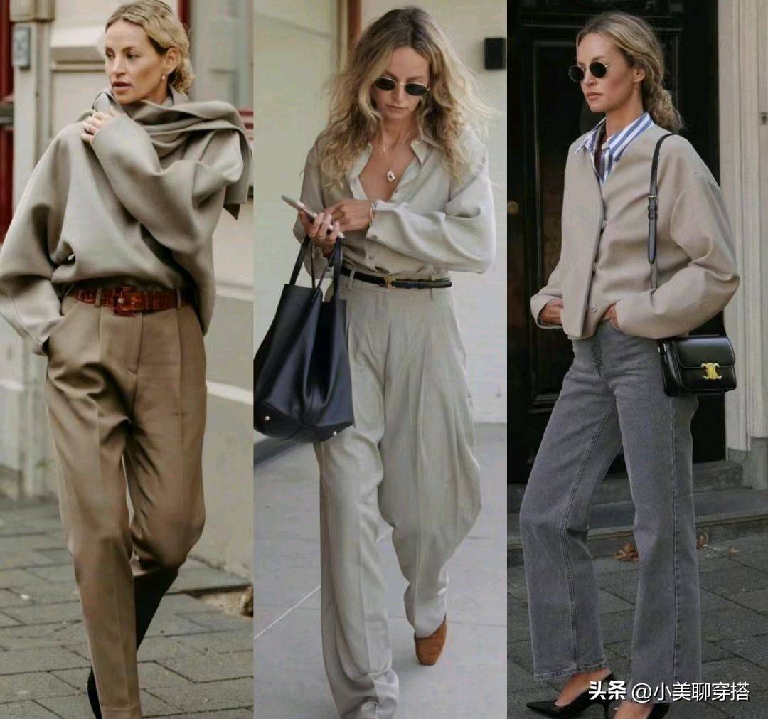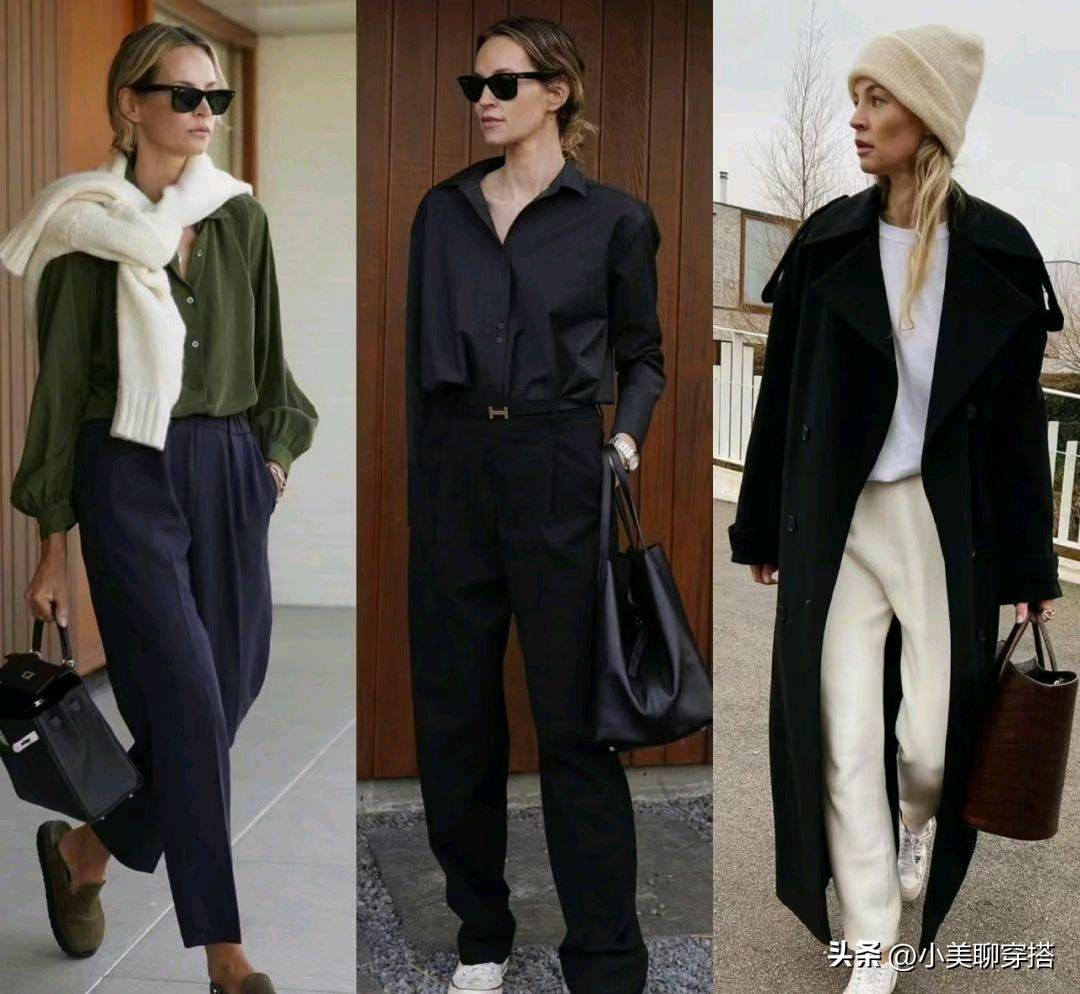 想要穿出极简通勤风,我们的颜色搭配就要做减法了。全身的颜色最好不要超过三种,包括包包与鞋子。