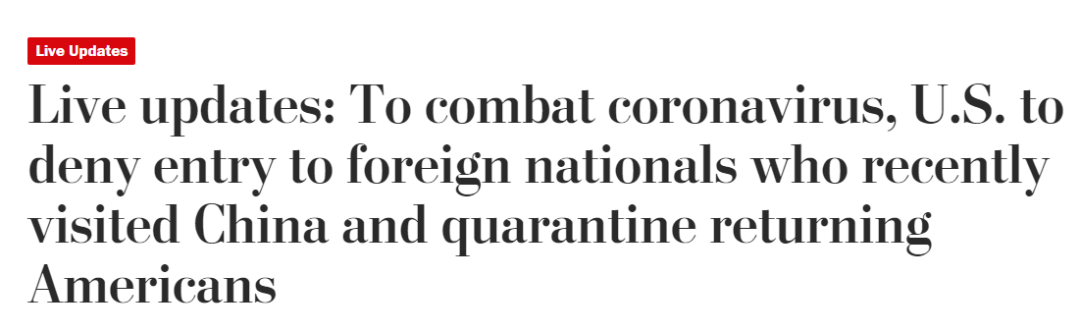 美国卫生与公众服务部部长阿莱克斯·阿扎(Alex Azar)宣布此次冠状病毒爆发为公共卫生紧急状态,他说,总统已经对过去14天内抵达中国的外国人实施了临时入境禁令。