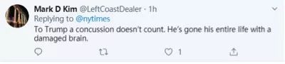但这些说法也遭到其他美国网民的驳斥,有人就讽刺说:对特朗普来说,脑震荡当然不算受伤了,因为他自己就是脑损伤……