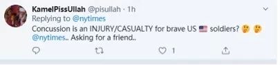 对此,特朗普的一些支持者则在社交媒体上表示,这些治病的伤情并不是皮外伤,而是伊朗导弹爆炸后的冲击波造成的“脑震荡”,而且这些症状只会在几天后才会显现出来,所以特朗普当天说“一切安好”是没问题的。还有特朗普的支持者甚至宣称“脑震荡”并不算“受伤”。