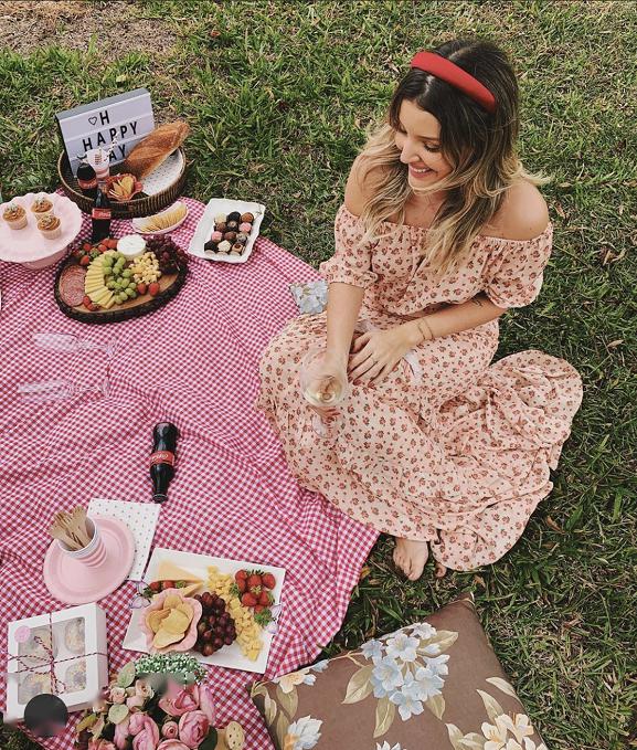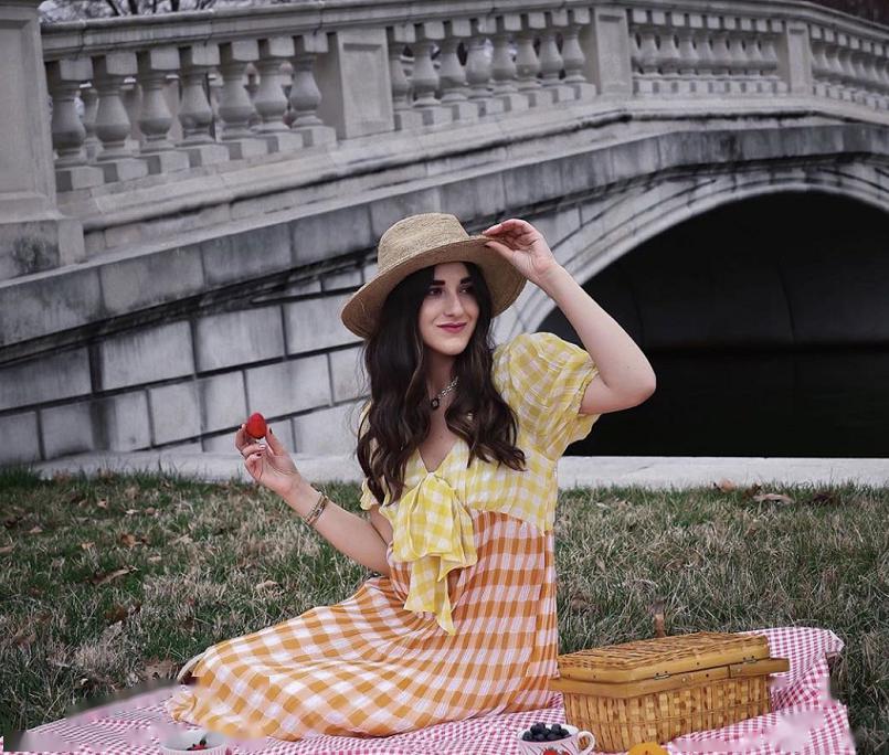 海外的博主们,多是穿着茶歇裙或法式风格服饰野餐,取其随意、慵懒之意。真正的野餐女郎,要根据野餐布的颜色,搭配自己的茶歇裙、鞋子和草帽。