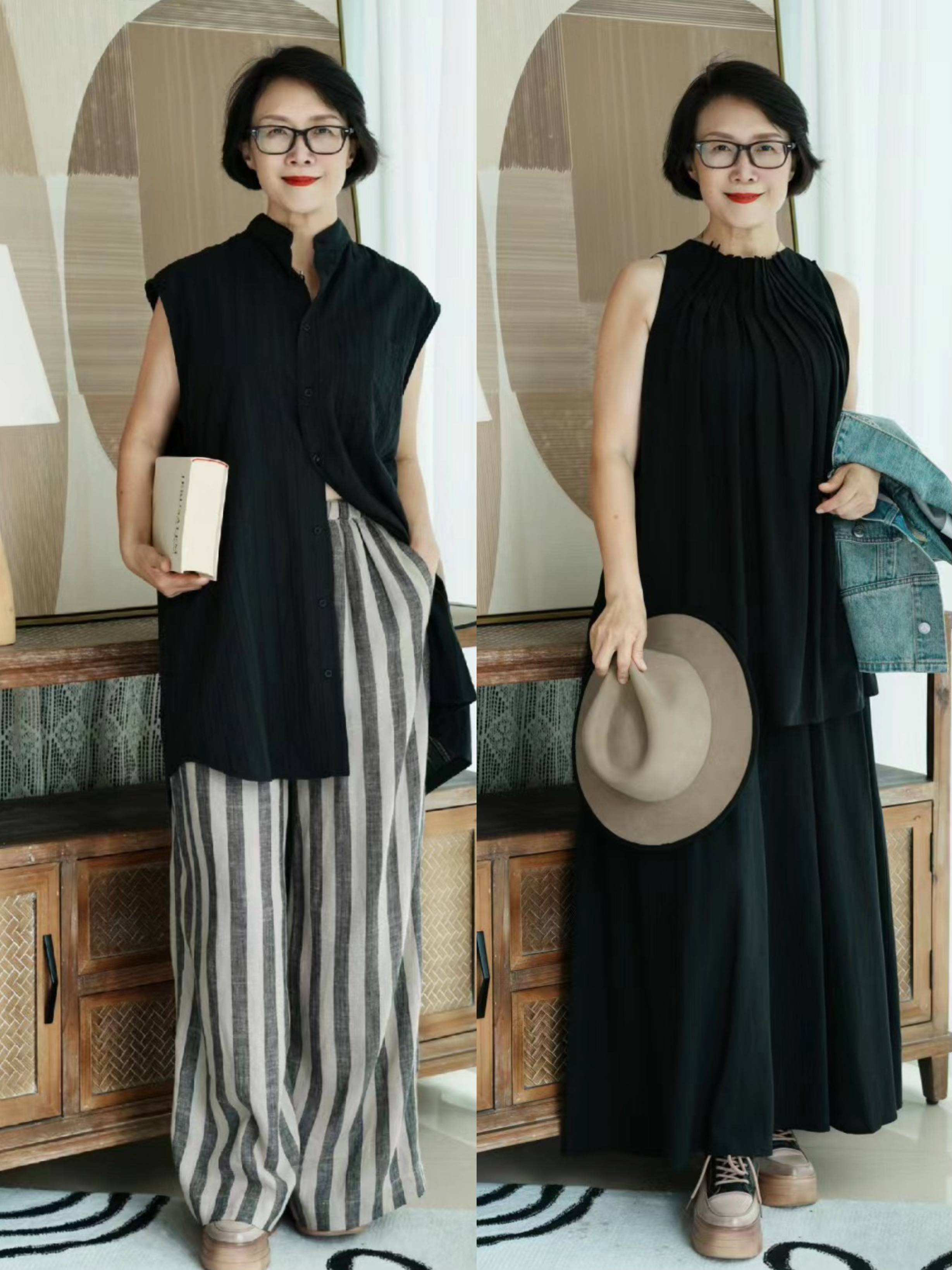 夏天这样穿,才更端庄得体、显年轻 50+的年纪,在夏天一定要远离一身黑、一身花的穿搭。 这种看似高级、实则很土气的搭配,尽量的敬而远之。 别看穿搭博主穿起来冷艳高贵、还显的肤色白皙,整个人都洋气起来。 大多数人没有博主的好身材、好肤色、好气质,日常生活也不能生活在美颜滤镜+精修图中。
