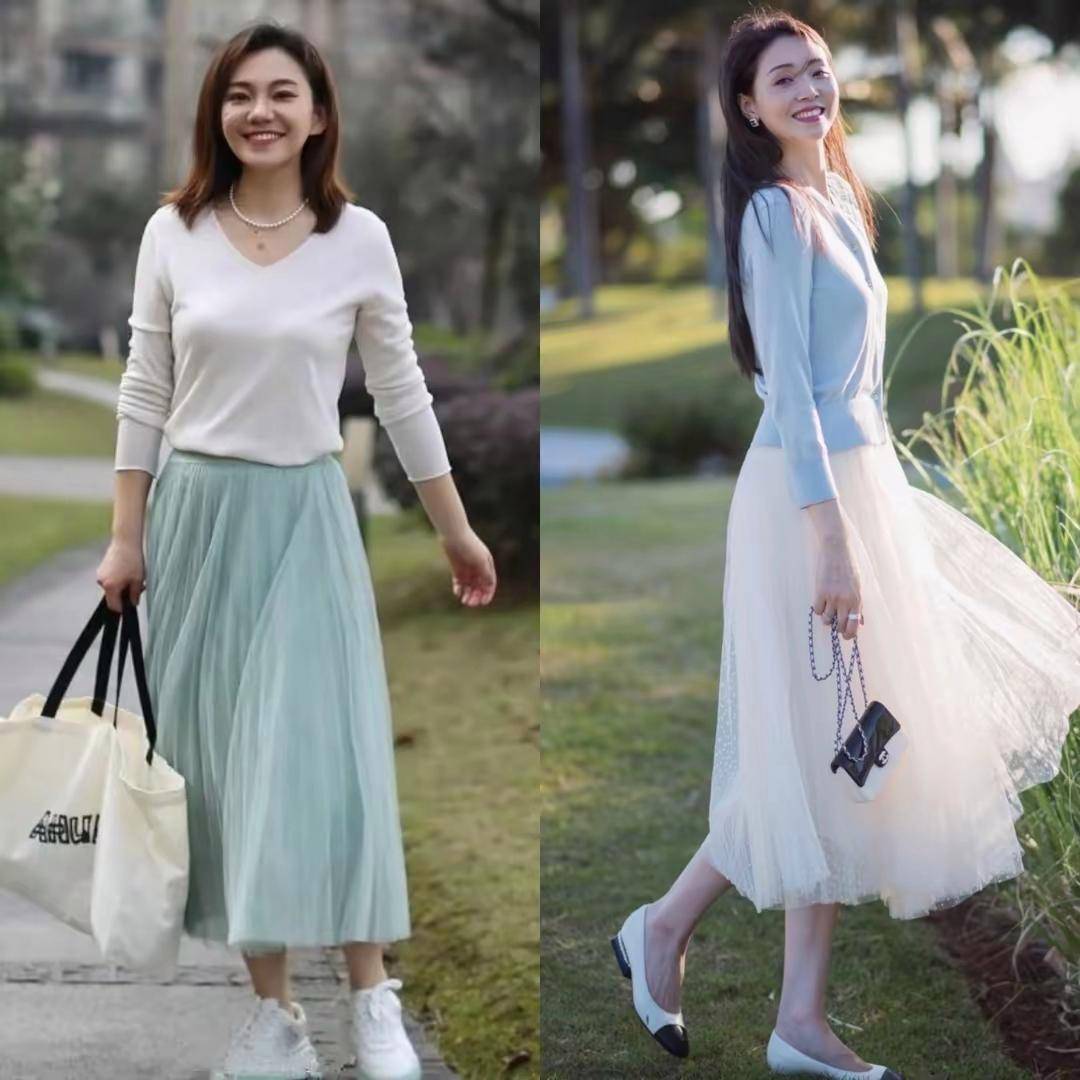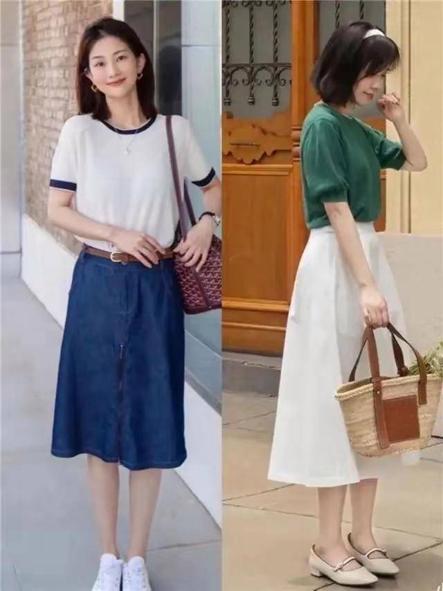 如果你是职场女性的话,而且是在奔三奔四的年龄段,这个时候建议穿过膝盖的半身裙,会能把你的气质和优雅感呈现出来,而且会更得体大方。 同时建议选择半身裙的时候露出脚踝,小腿的地方也要适当的留白,这样才不会压身,更清爽干净利落。