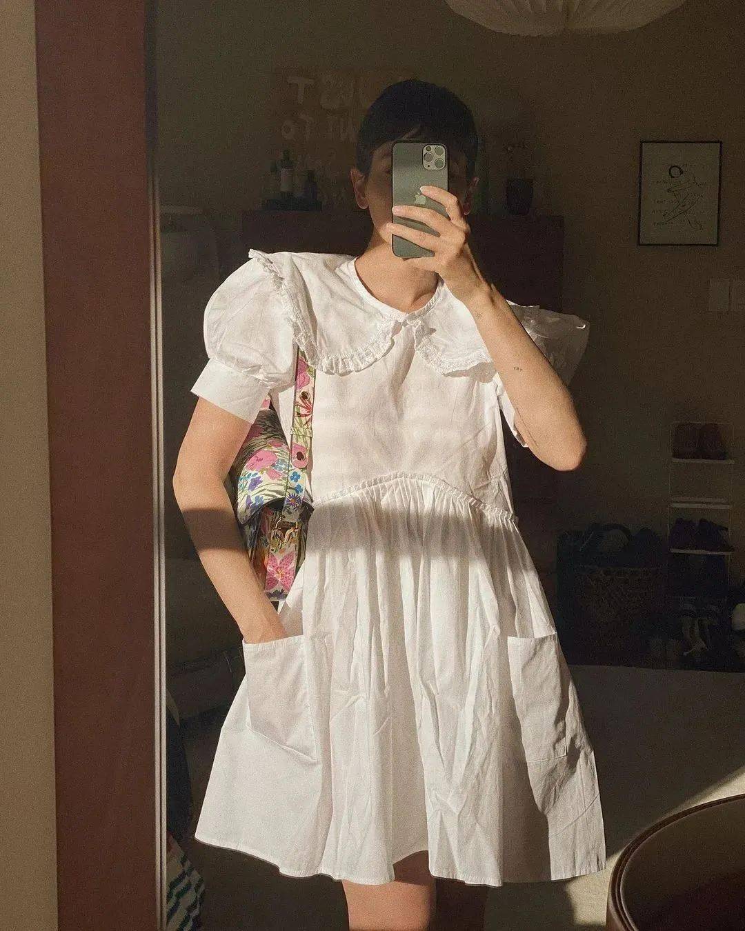 纯白色的娃娃裙,仿佛散发出一种无与伦比的纯真感。
