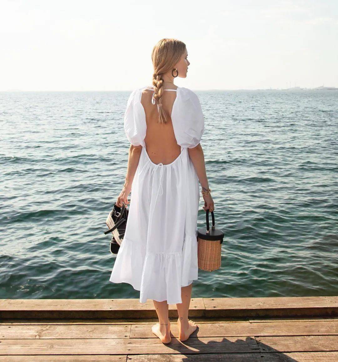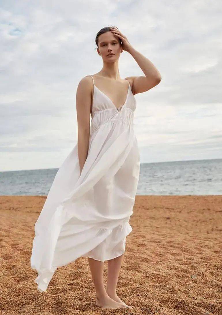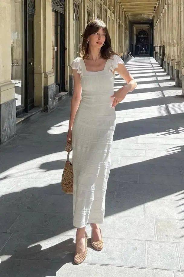 穿上这样的白裙,你可以赤脚踏在温暖的沙地上,感受细软的沙子从脚趾间溜过;也可以坐在带有遮阳伞的躺椅上,闭上眼睛听海浪轻轻拍打岸边的声音。