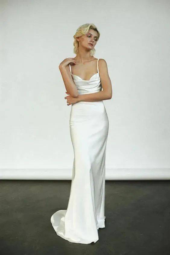 绸缎白裙,简约大气中透露着一种高贵优雅的氛围。