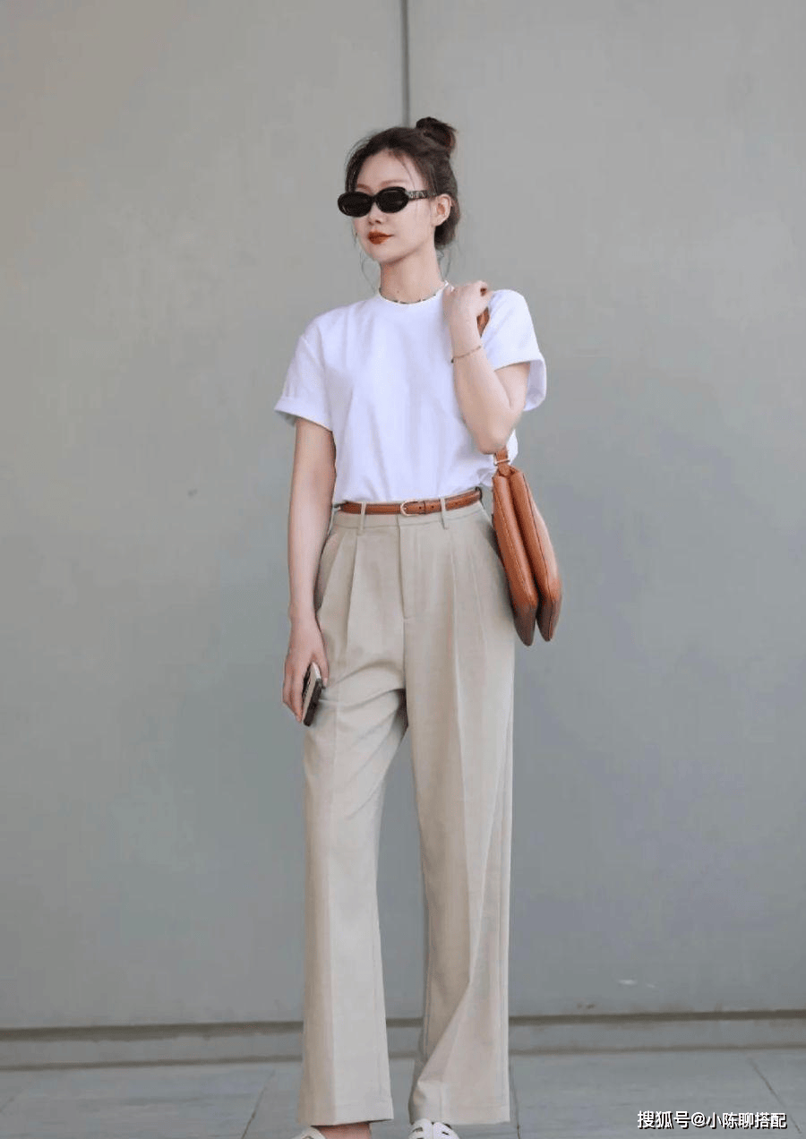 在夏季,一条经典的小白裤完全可以完成时尚造型。和黑色裤子相比,它自带轻盈感,干净利落,虽然搭配T恤或衬衫都能显贵气。 而且,对于很多深色服装以及设计比较花哨的,搭配一条白裤子,可以让穿着看上去没有那么老气。