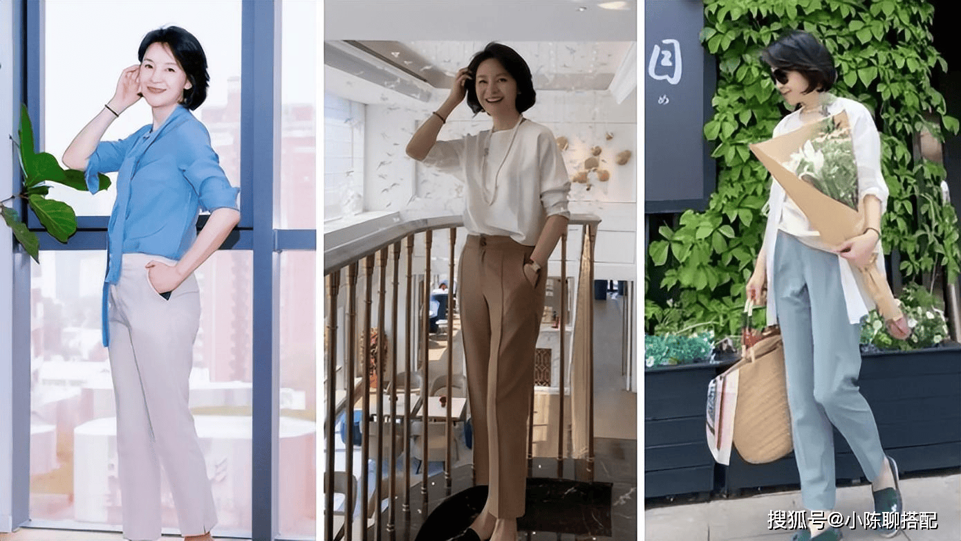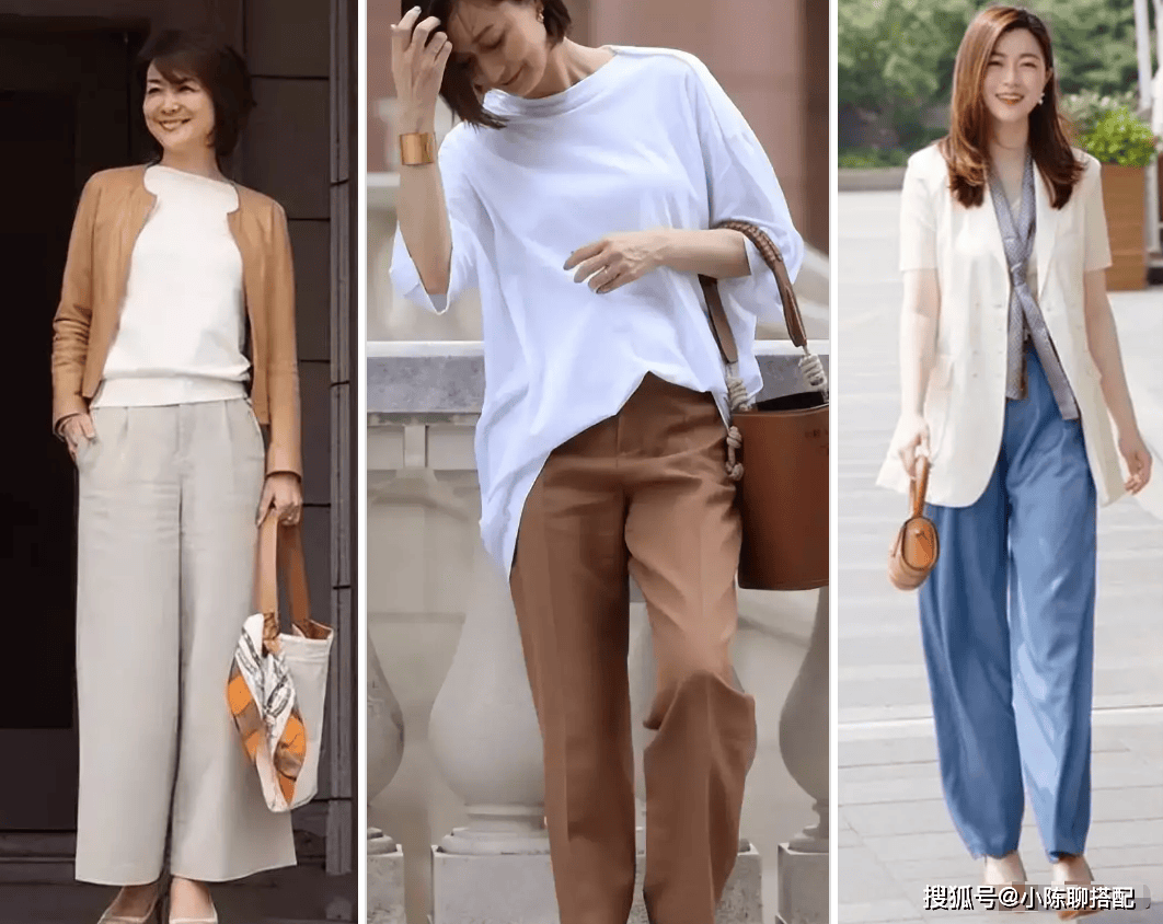 三、中年女人夏天穿裤子,这样搭很洋气!