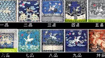 文官官服上绣鸟类:一品绣鹤,二品绣锦鸡,三品绣孔雀,四品绣雁,五品绣白鹇,六品绣鹭鸶,七品绣鸿鹄,八品绣鹌鹑,九品绣练鹊。