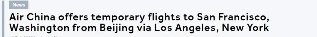 由于中美许多国际航班停飞,于是中国国际航空公司即将特殊增加临时航班。