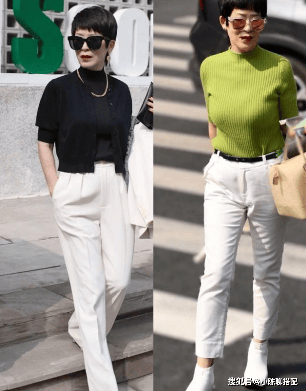 此外,热爱追求时尚的中老年女性,希望大家也不要忽视小白裤的存在。直筒的版型既能修饰我们不完美的腿型,同时还能起到提亮吸睛的效果,在一定程度上给人一种简约又洋气的形象。