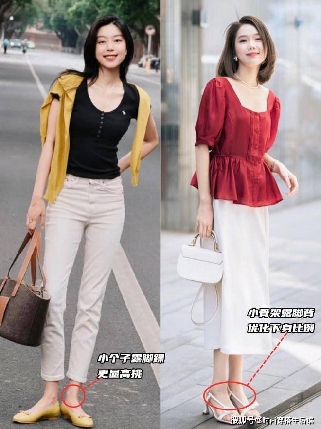 厚厚的鞋子确实能在物理上帮助咱们矮个子女人达到更高的视觉高度,但其实过高的鞋跟不仅会让脚感急速下降是,还很容易造成“踩高跷”的问题,让整体比例失衡,重心都集中在鞋上,很难凸显出小个子的灵动属性。