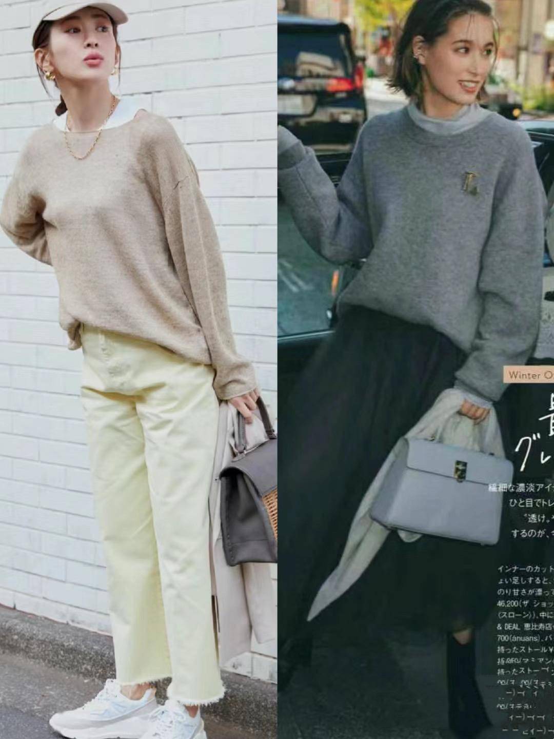 春天里的针织衫,可以选择稍微带有一定松弛度的款式。针织衫外穿的时候,建议不要选择太修身的款式。稍微宽松的针织衫,可以掩盖上身的微胖,遮盖体型上的小瑕疵。