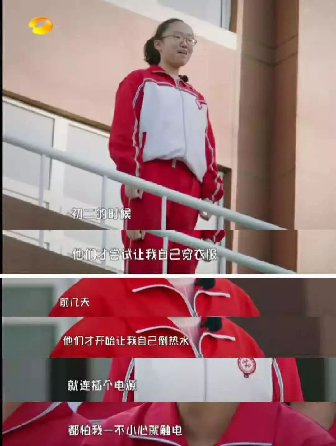 初二时,家长才尝试让她自己穿衣服,她想要给自己买衣服,却根本不懂型号大小的概念;