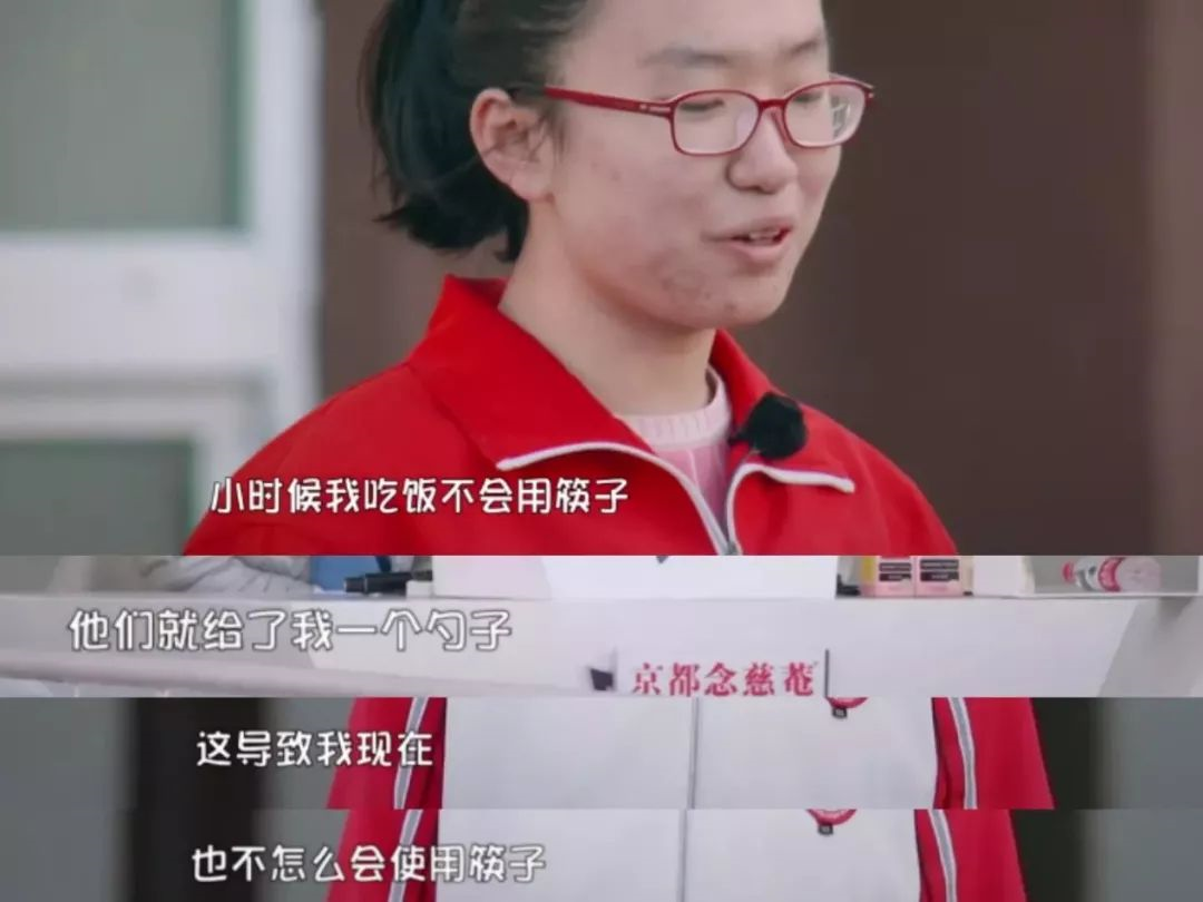 小时候,她吃饭不会用筷子,家长没有教她怎么用,而是让她改用勺子,直到现在她也不太会用筷子;