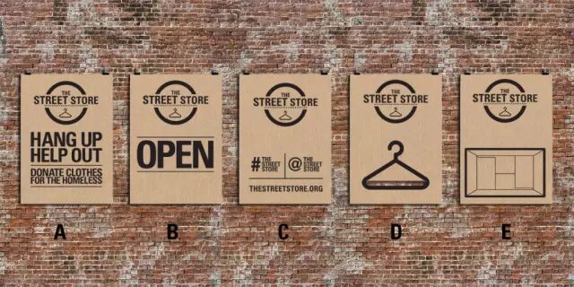 他把活动海报设计成衣架和鞋盒的形式,用来陈列衣服和鞋子,摆在街头,如同自由商场,让流浪人可以自由挑选心仪的物品,“为什么捐赠一定是被动的接受和承受异样的眼光,他们也应该同样有选择的权利”。