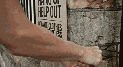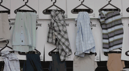 这些挂在纸板上的商品全部免费。 每个人都有选择的权利,都有追求美的权利。 ”我们每天都在捐衣服, 可是有多少次考虑过他们的感受“ Max Pazak要把捐赠衣服的尴尬 变成自主搭配的喜悦。
