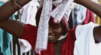 她用自己选择的头巾为自己凹造型, 而不受怜悯目光的注视。