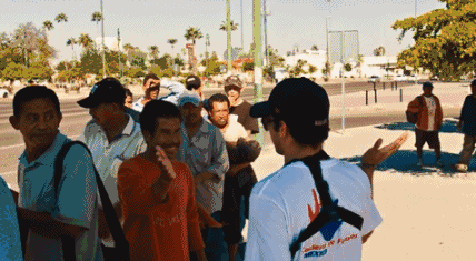 流浪人兴奋地交头接耳, 人群中,他们热烈地讨论自己喜欢的事物。 警戒线外开始排起长长的队伍……
