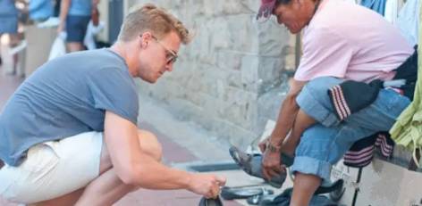他为自己挑选喜欢舒适的皮鞋, 没有尴尬,也没有强迫。