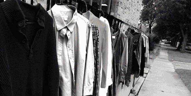 Max Pazak还刻意留了一排空衣架, 留给那些想要捐赠衣服的人,