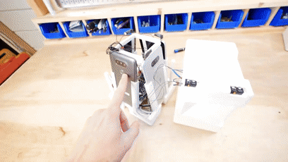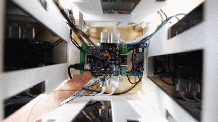 整个装置的建模设计都是小哥自己完成的,所有零部件都通过 3D 打印出来,而装置中的电路板也是他自己焊接的。
