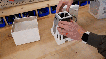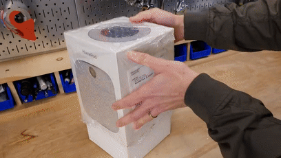 完成后的装置从外表看就是个智能音响 HomePod,不过打开后呢却会发现内有玄机!