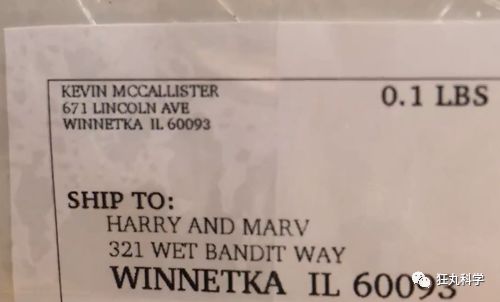 比如说外包装上贴的这张运单,仔细一看寄件人是 Kevin Mccallister ,寄给 Harry and Marv。