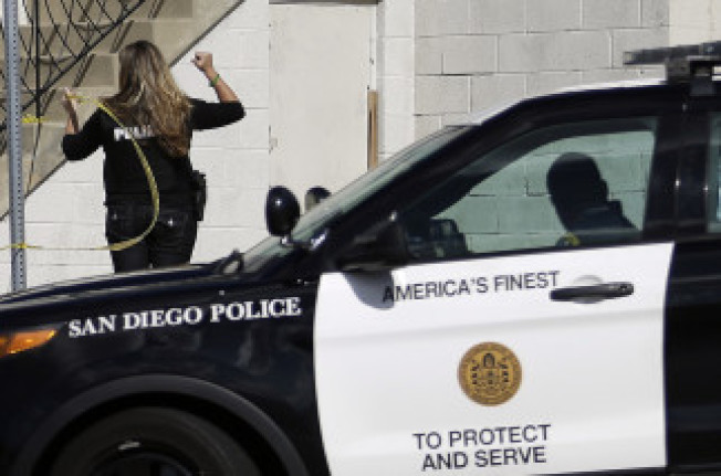 加州圣地牙哥市两名警察28日晚间在拦检交通事件时,遭狙击,一警死亡,一受伤。(推特)