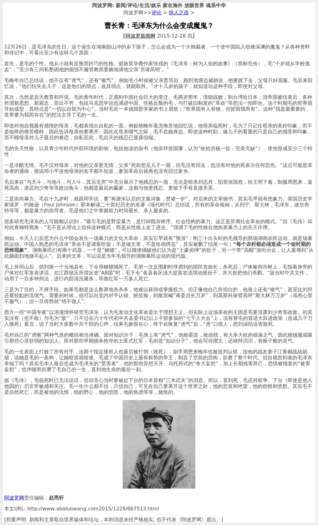曹长青:使毛泽东会变成魔鬼的“两气”《转》
