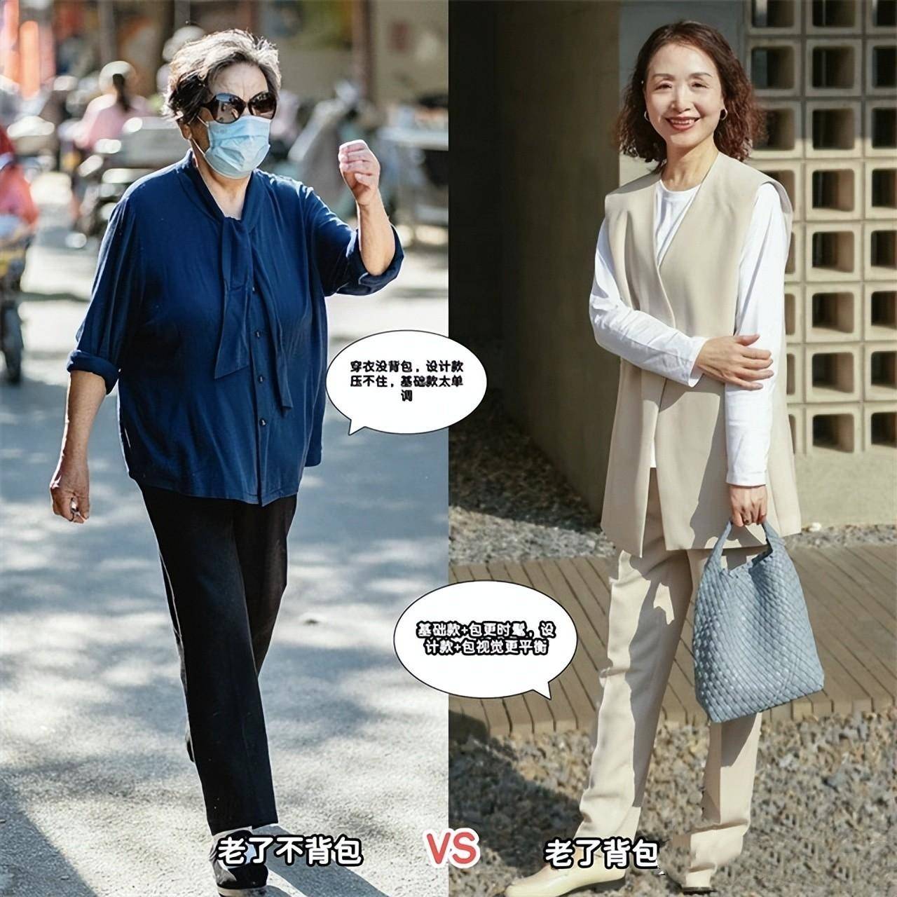 包包也是大家日常出行必不可少的配饰种类,上图就为我们做了一个很好的对比。若是日常穿搭,不佩戴包包,整体的造型很容易显得过分单调,从而失去了趣味性。而加入了包包之后,不仅可以平衡造型的时尚感,还可以增添视觉重心,看起来更加抓人眼球。