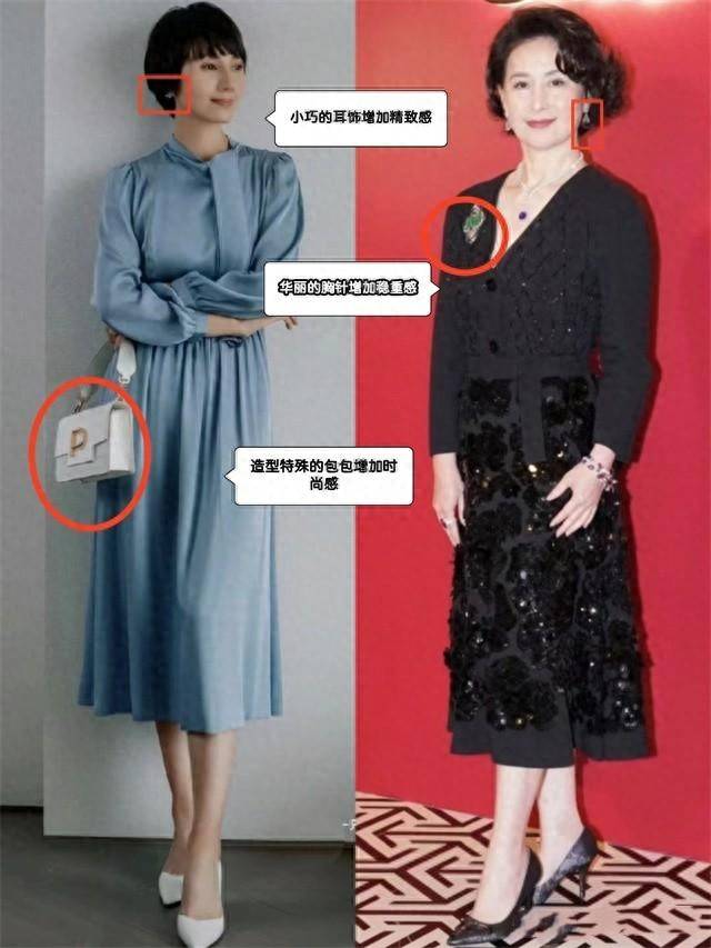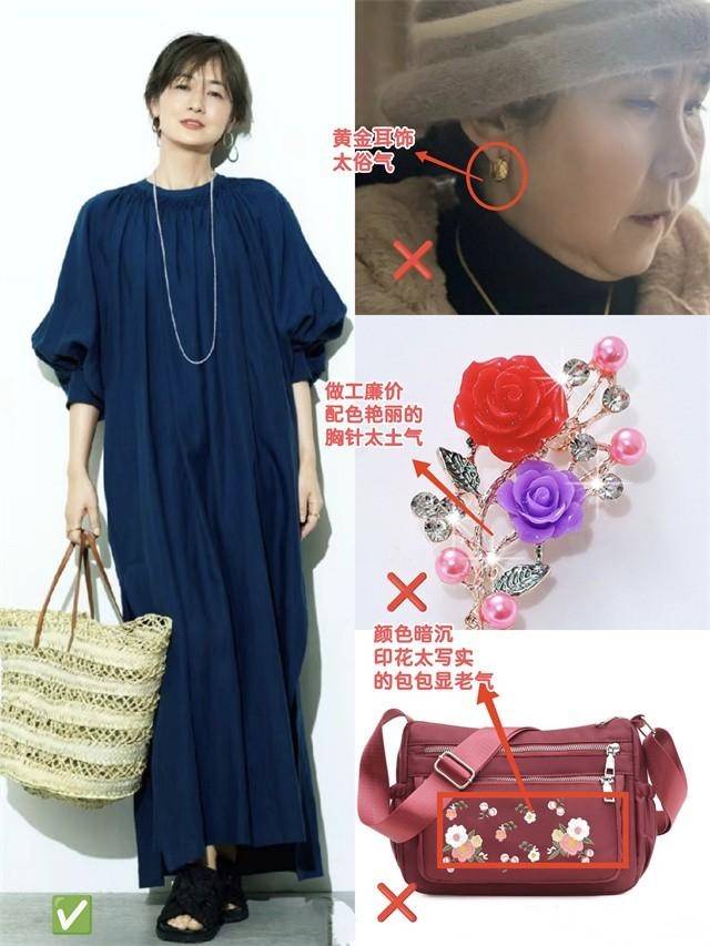 中年女性在选择配置的时候,最需要注意的就是所选的配饰是否符合自己的气质。像是做工过于廉价的花朵样胸针、过于老气的黄金类首饰或者是配色太过于暗沉的深色系包包等,都会在无形中加重年龄感,不仅显老,还会显得十分俗气。