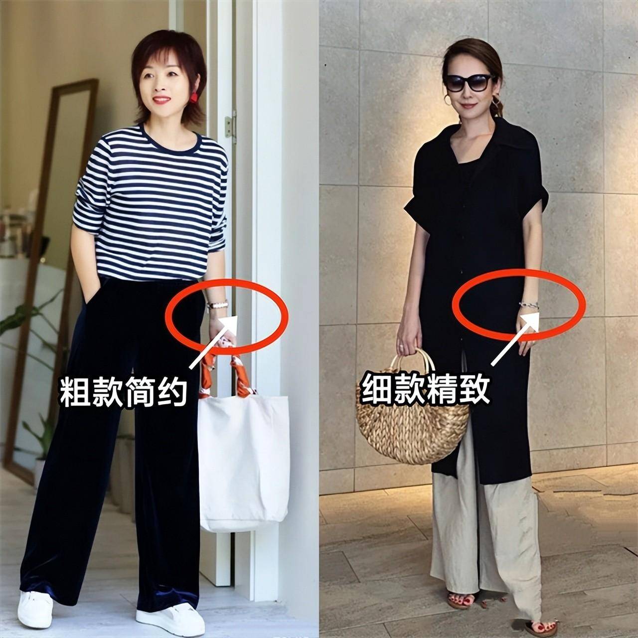 相比于手表,手镯更能提升气质感,而大家在选择手镯的时候,也要根据手镯链条的粗细来决定。