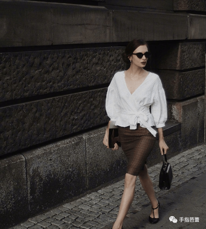 法国女人们对大V领情有独钟,穿着任何上衣,哪怕是衬衫都要最大限度地露出脖颈锁骨线条,将女人味无声地融合在举手投足间。