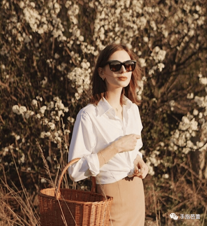打开白色衬衫第三颗,甚至第四颗纽扣,最大限度地释放女人味。让白色领口随意摇摆,越轻松、越时髦。