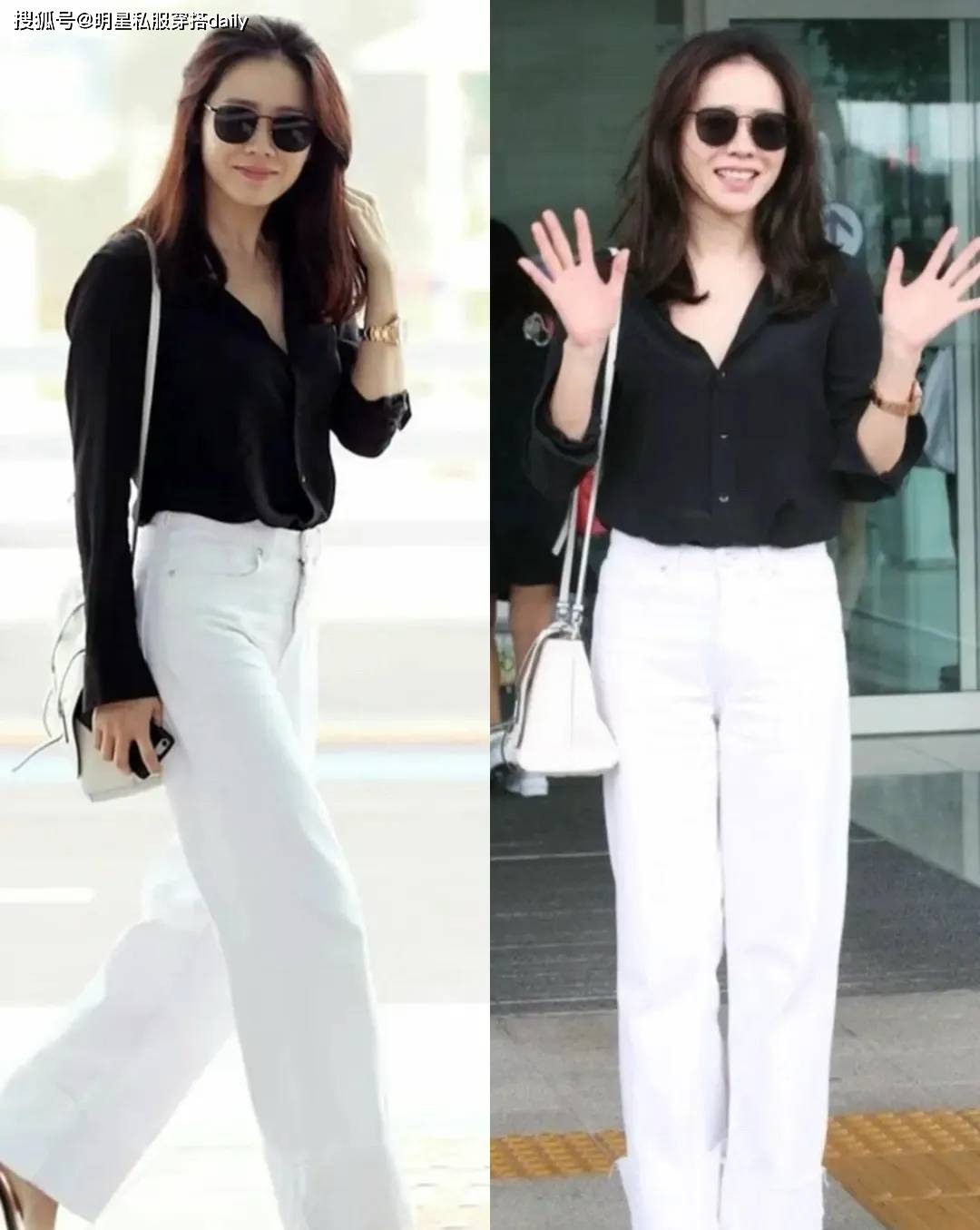 也可以像孙艺珍那样,身穿黑色衬衣,搭配白色直筒裤,黑白对比,简约又高级。这样的搭配,无论是职场还是休闲场合,都能让你轻松应对,展现出你的独特品味与气质。
